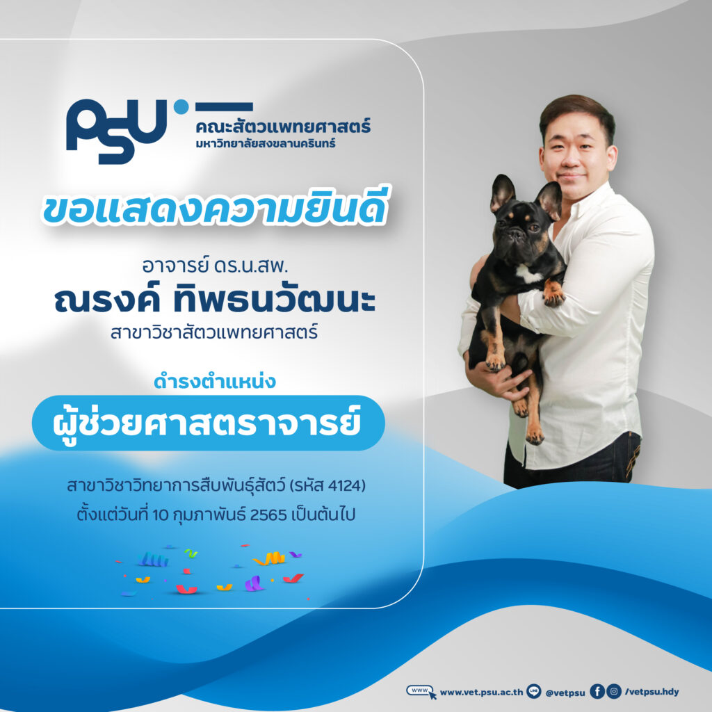 ขอแสดงความยินดี อาจารย์ ดร.น.สพ.ณรงค์ ทิพธณวัฒนะ ในโอกาศดำรงตำแหน่ง #ผู้ช่วยศาสตราจารย์
