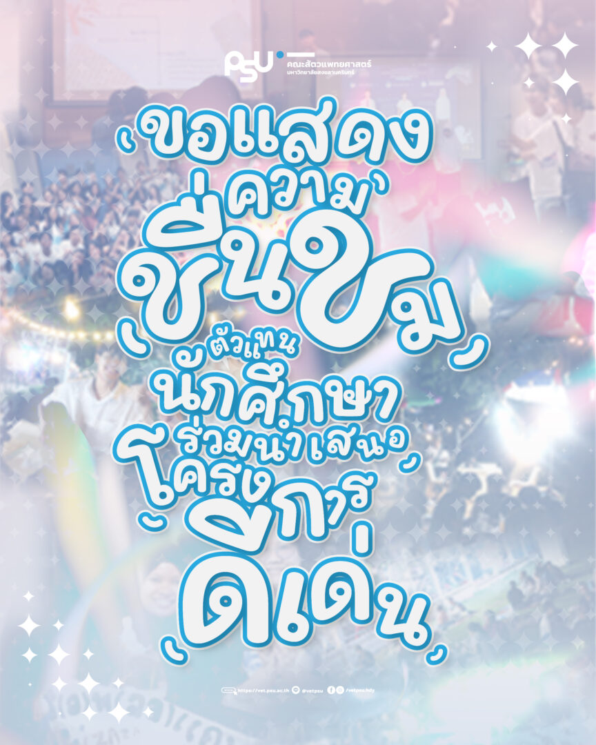 [ #ขอชื่นชม ] คณะสัตวแพทยศาสตร์ ม.อ. ขอชื่นชมตัวแทนนักศึกษาคณะสัตวแพทยศาสตร์ร่วมนำเสนอโครงการ เพื่อพิจารณาคัดเลือกเป็นโครงการดีเด่น จำนวน 2 โครงการ ประจำปีการศึกษา 2567 ✨