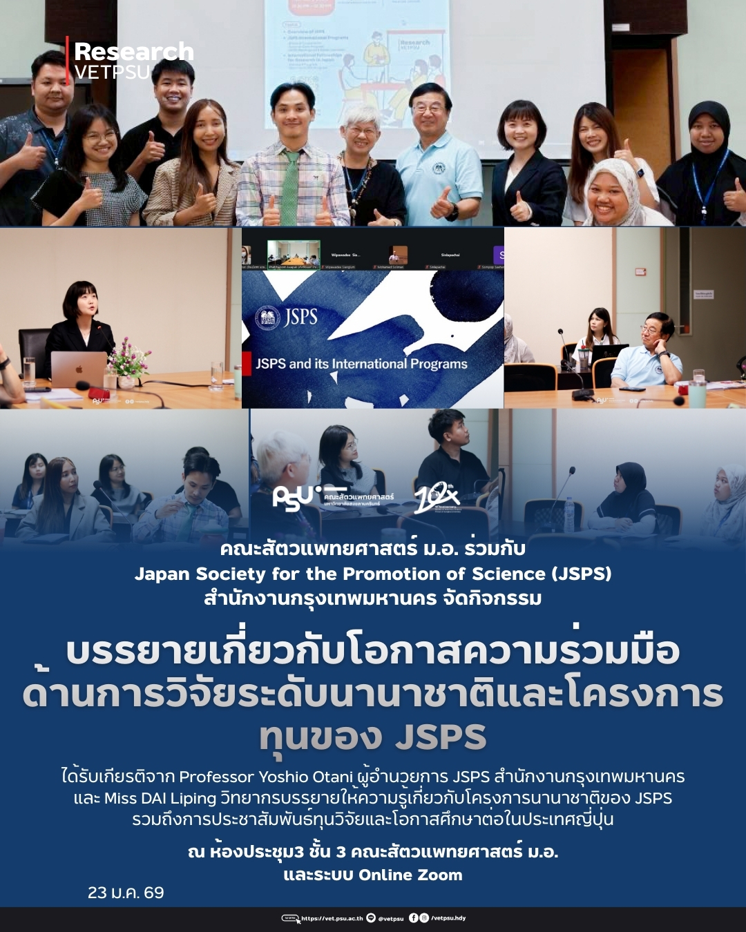 āđāļĄāļ·āđāļāļ§āļąāļāļāļĩāđ 23 āļĄāļāļĢāļēāļāļĄ 2569 āđāļ§āļĨāļē 13.30â14.30 āļ. āļāļāļ°āļŠāļąāļāļ§āđāļāļāļĒāļĻāļēāļŠāļāļĢāđ āļĄ.āļ.āļĢāđāļ§āļĄāļāļąāļ Japan Society for the Promotion of Science (JSPS) āļŠāļģāļāļąāļāļāļēāļāļāļĢāļļāļāđāļāļāļĄāļŦāļēāļāļāļĢ ðŊðĩ āļāļąāļāļāļīāļāļāļĢāļĢāļĄāļāļĢāļĢāļĒāļēāļĒāđāļāļĩāđāļĒāļ§āļāļąāļ āđāļāļāļēāļŠāļāļ§āļēāļĄāļĢāđāļ§āļĄāļĄāļ·āļāļāđāļēāļāļāļēāļĢāļ§āļīāļāļąāļĒāļĢāļ°āļāļąāļāļāļēāļāļēāļāļēāļāļī āđāļĨāļ°āđāļāļĢāļāļāļēāļĢāļāļļāļāļāļāļ JSPS āļ āļŦāđāļāļāļāļĢāļ°āļāļļāļĄ 3 āļāļąāđāļ 3 āđāļĨāļ°āļāđāļēāļāļĢāļ°āļāļ Online Zoom ðŧ